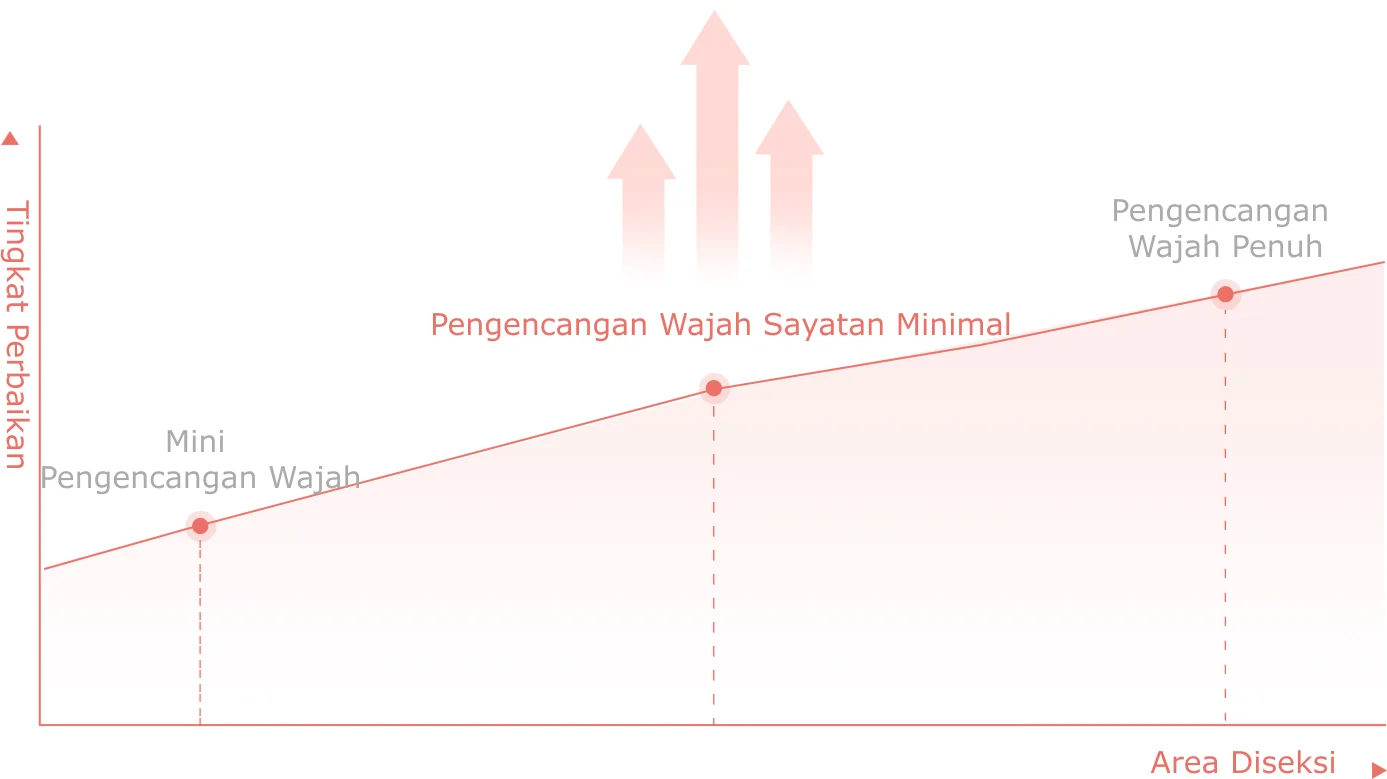 Dibandingkan dengan mini lifting, pengangkatan dengan sayatan minimal menargetkan area yang lebih luas untuk efek pengangkatan yang lebih nyata, sementara membutuhkan sayatan yang lebih kecil daripada pengencangan wajah secara keseluruhan, sehingga periode pemulihan lebih singkat.